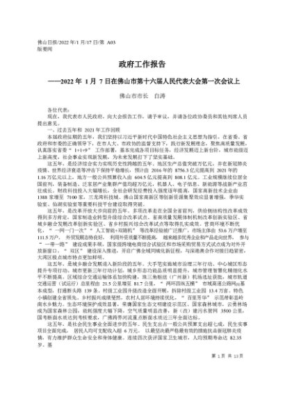 / 署名文章:2022.01.17佛山市市长白涛:政府工作报告