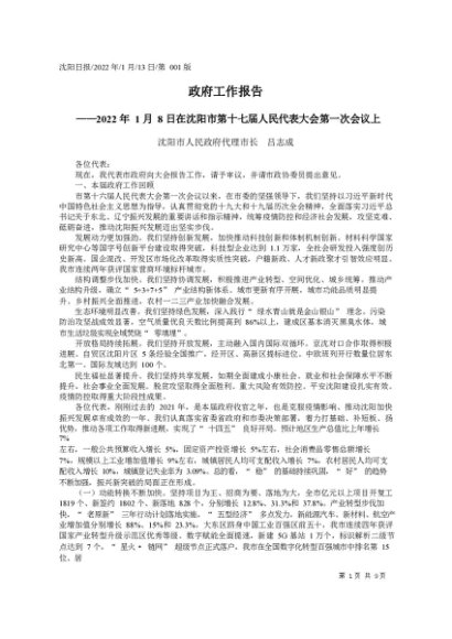署名文章:2022.01.13沈阳市人民政府代理市长吕志成:政府工作报告
