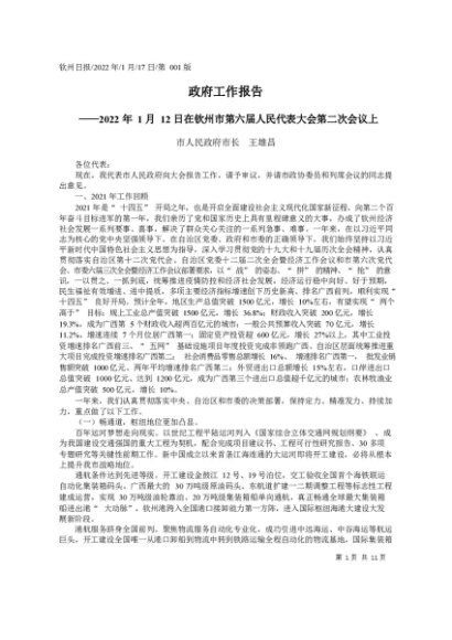 / 署名文章:2022.01.17市人民政府市长王雄昌:政府工作报告