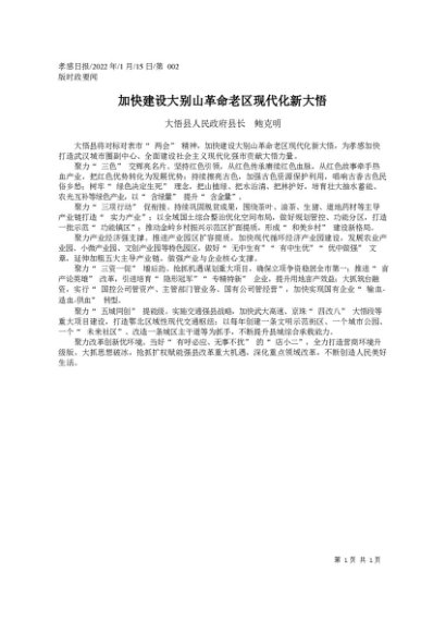 / 署名文章:2022.01.15大悟县人民政府县长鲍克明:加快建设大别山革命老区现代化新大悟