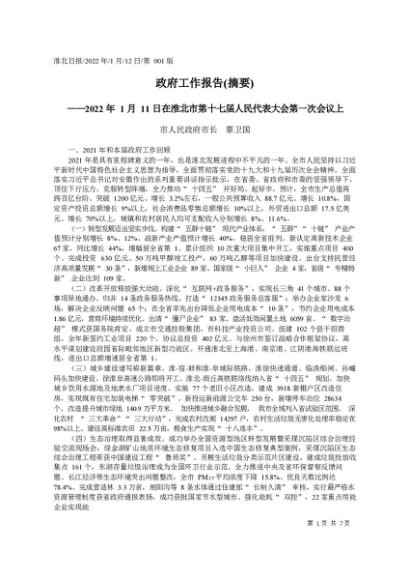 / 署名文章:2022.01.12市人民政府市长覃卫国:政府工作报告(摘要)