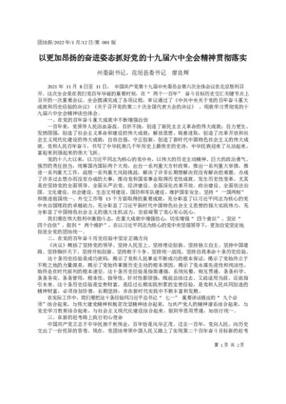 署名文章:2022.01.12州委副书记、花垣县委书记廖良辉:以更加昂扬的奋进姿态抓好党的十九届六中全会精神贯彻落实
