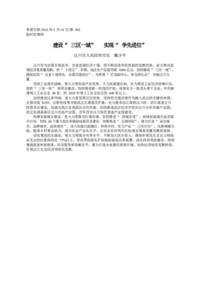 署名文章:2022.01.11汉川市人民政府市长戴少平:建设三区一城实现争先进位