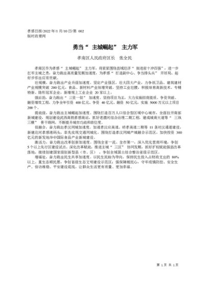 / 署名文章:2022.01.10孝南区人民政府区长张全民:勇当主城崛起主力军