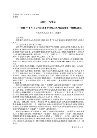 署名文章:2022.01.11丹东市人民政府市长郝建军:政府工作报告