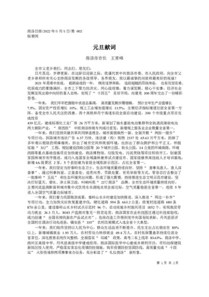 / 署名文章:2022.01.01商洛市市长王青峰:元旦献词