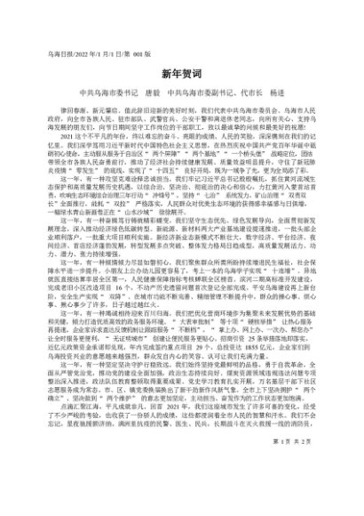 / 署名文章:2022.01.01中共乌海市委书记唐毅中共乌海市委副书记、代市长杨进:新年贺词
