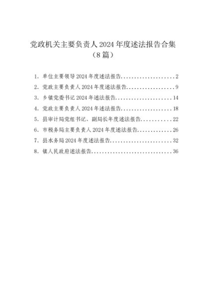 / 述职报告:2024年度党政机关主要负责人述法报告合集(8篇)