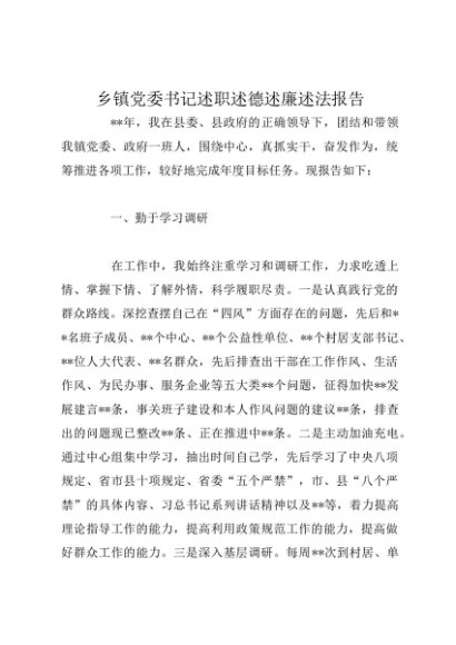 / 述职报告:20250422乡镇党委书记述职述德述廉述法报告