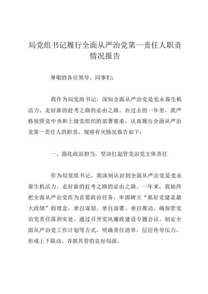 / 述职报告:20241127局党组书记履行全面从严治党第一责任人职责情况报告