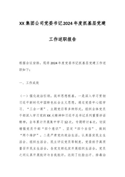 / 述职报告:20241125集团公司党委书记2024年度抓基层党建工作述职报告