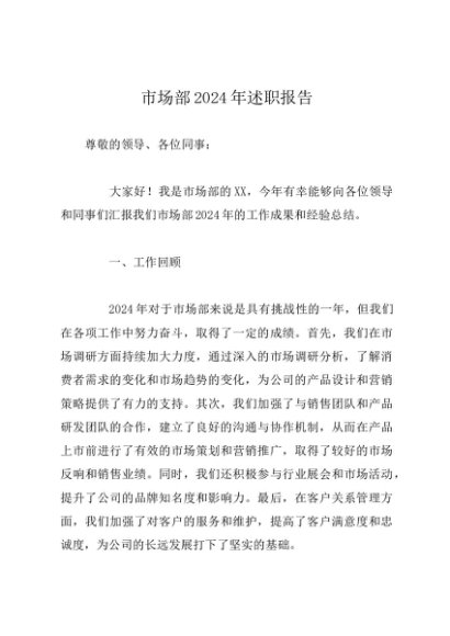 / 述职报告:20241127市场部2024年述职报告