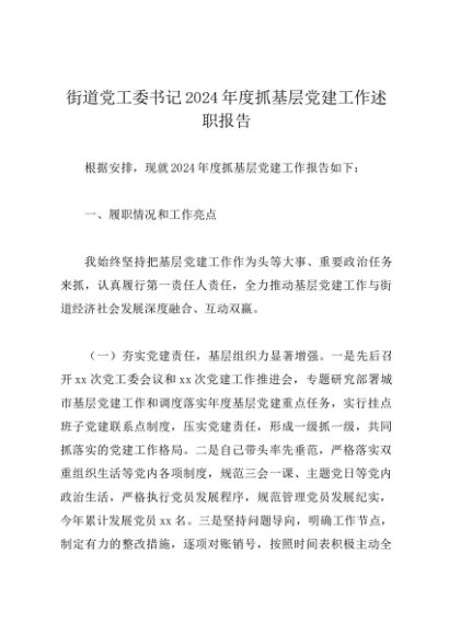 / 述职报告:20241127街道党工委书记2024年度抓基层党建工作述职报告