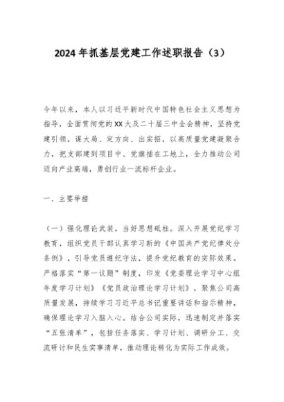 / 述职报告:20241125抓基层党建工作述职报告(3)