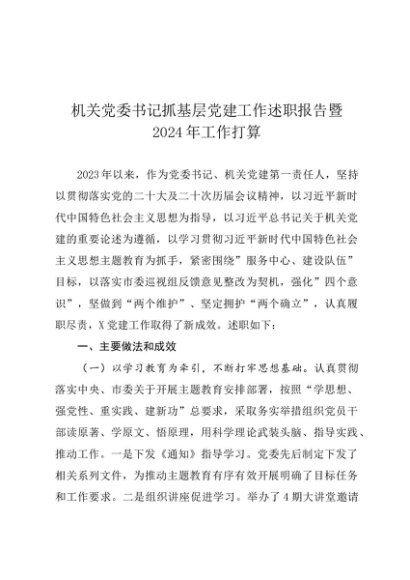 / 述职报告:2023年机关党委书记抓基层党建工作述职报告