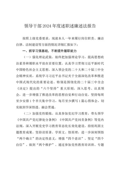 / 述职报告:20241125领导干部2024年度述职述廉述法报告