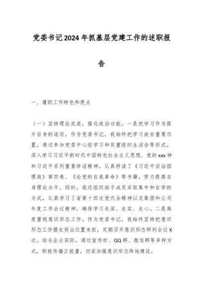 / 述职报告:20241125党委书记2024年抓基层党建工作的述职报告
