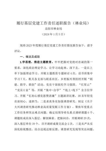 / 述职报告:20240125履行基层党建工作责任述职报告(林业局)