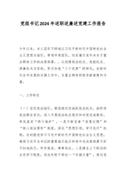 / 述职报告:20241125党组书记2024年述职述廉述党建工作报告