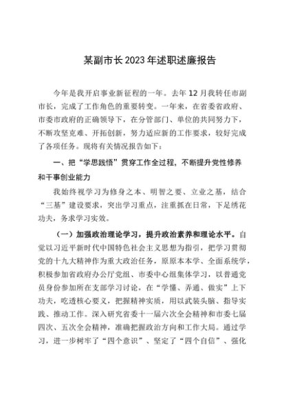 / 述职报告:20231224某副市长2023年述职述廉报告