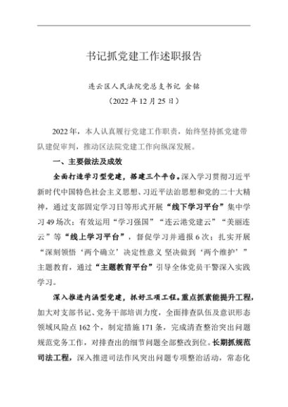 / 述职报告:2022年度书记抓基层党建工作述职报告(法院)