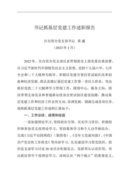 / 述职报告:2022年度书记抓基层党建工作述职报告(自贸办)