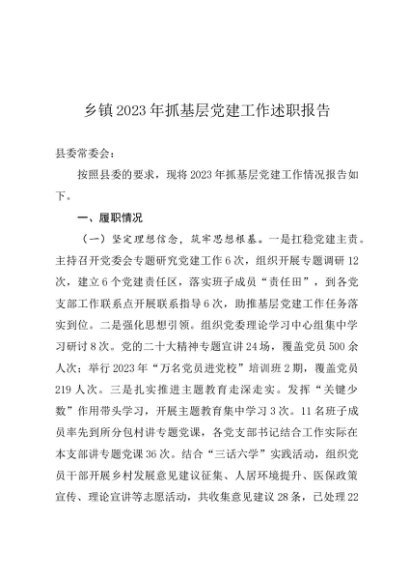 述职报告:2023年乡镇抓基层党建工作述职报告