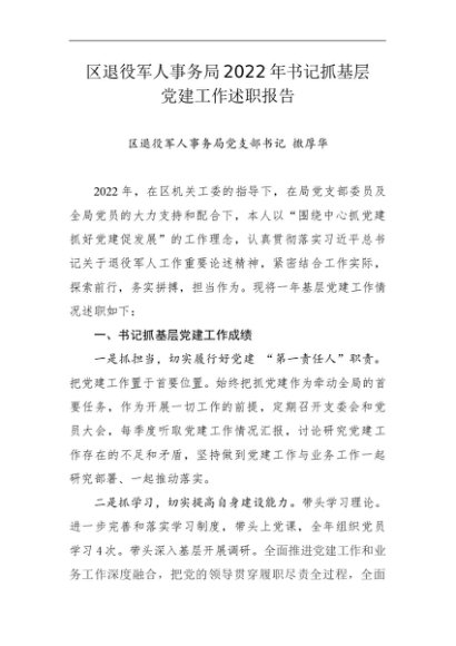 / 述职报告:2022年度书记抓基层党建工作述职报告(退役军人事务局)
