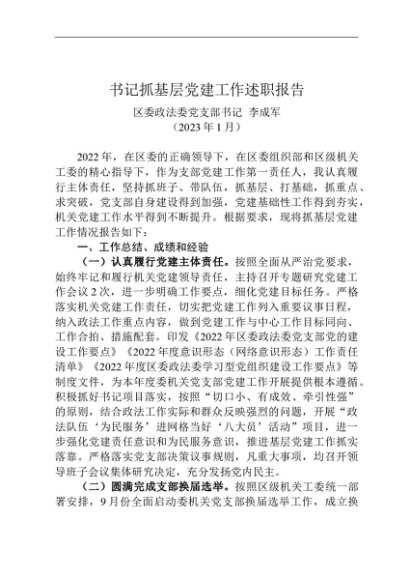 / 述职报告:2022年度书记抓基层党建工作述职报告(政法委)