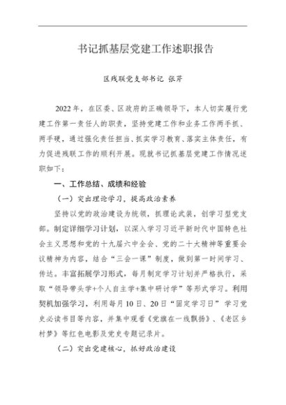 / 述职报告:2022年度书记抓基层党建工作述职报告(残联)