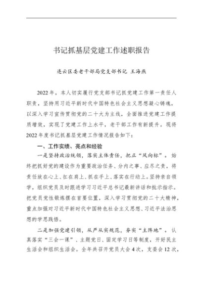 / 述职报告:2022年度书记抓基层党建工作述职报告(老干局)