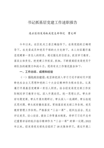 / 述职报告:2022年度书记抓基层党建工作述职报告(经发局)