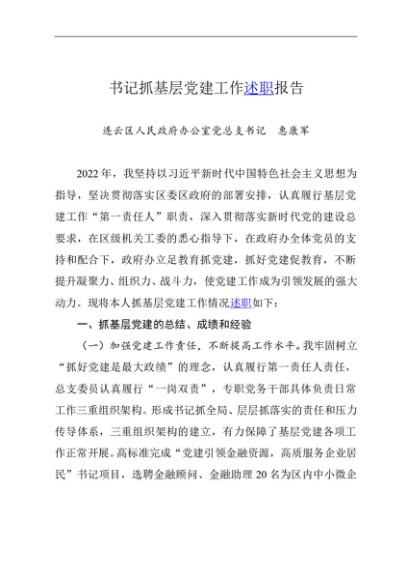 / 述职报告:2022年度书记抓基层党建工作述职报告(政府办)