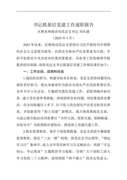 / 述职报告:2022年度书记抓基层党建工作述职报告(林业和海洋局)