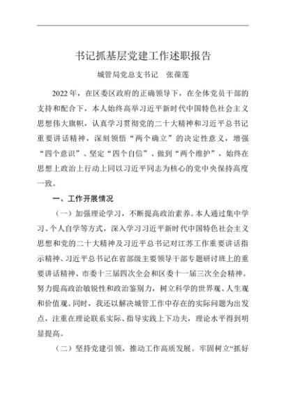 / 述职报告:2022年度书记抓基层党建工作述职报告(城管局)