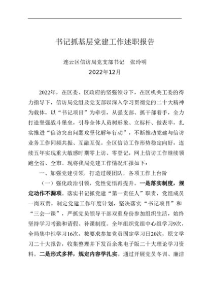 / 述职报告:2022年度书记抓基层党建工作述职报告(信访局)