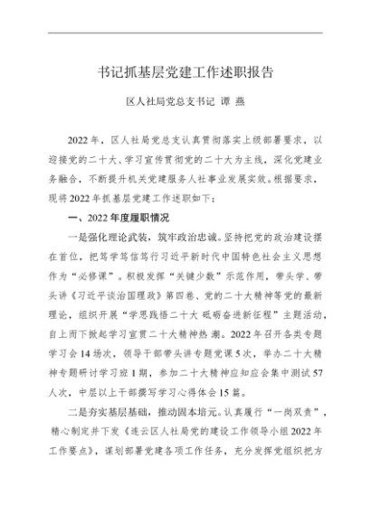 / 述职报告:2022年度书记抓基层党建工作述职报告(人社局)
