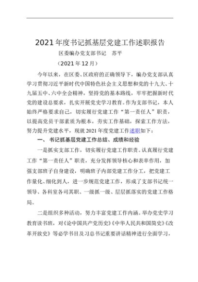 / 述职报告:2021年度书记抓基层党建工作述职报告(编办)