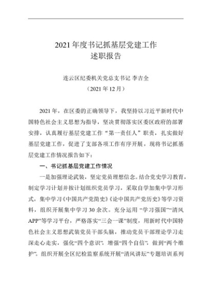 / 述职报告:2021年度书记抓基层党建工作述职报告(纪委)