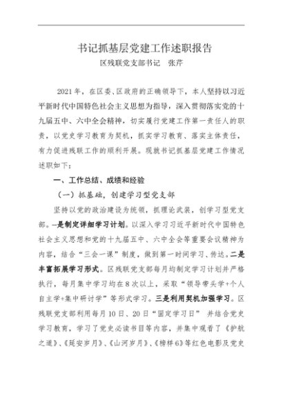 / 述职报告:2021年度书记抓基层党建工作述职报告(残联)