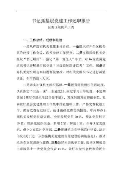 / 述职报告:2021年度书记抓基层党建工作述职报告(机关工委)