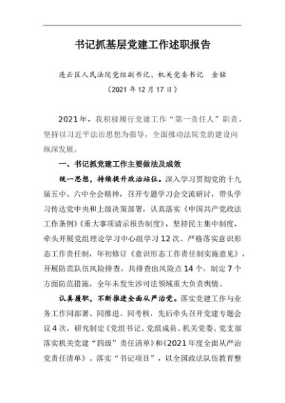 / 述职报告:2021年度书记抓基层党建工作述职报告(法院)