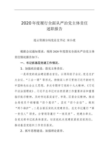 / 述职报告:2020年度履行全面从严治党主体责任述职报告(资源