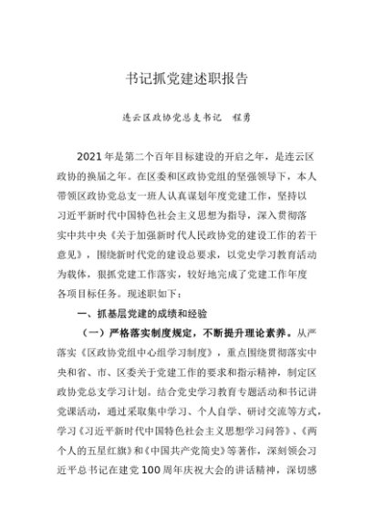 / 述职报告:2021年度书记抓基层党建工作述职报告(政协)