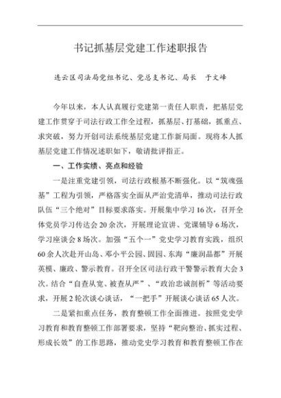 / 述职报告:2021年度书记抓基层党建工作述职报告(司法局)