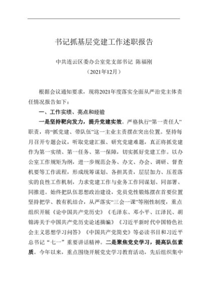 述职报告:2021年度书记抓基层党建工作述职报告(政府办)