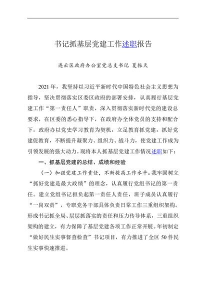 / 述职报告:2021年度书记抓基层党建工作述职报告(政府办)