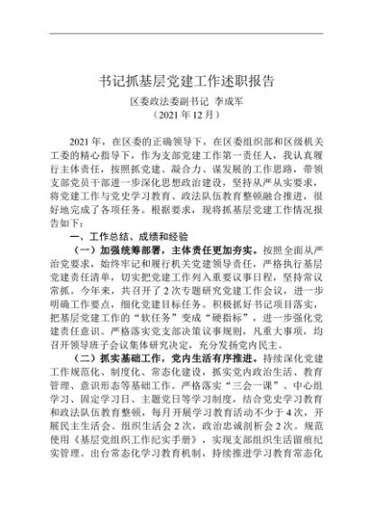 / 述职报告:2021年度书记抓基层党建工作述职报告(政法委)