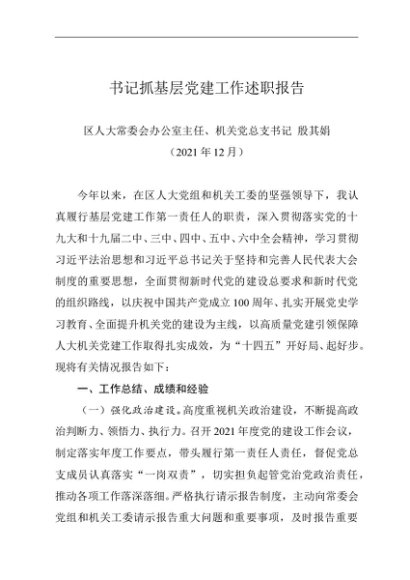 / 述职报告:2021年度书记抓基层党建工作述职报告(人大)