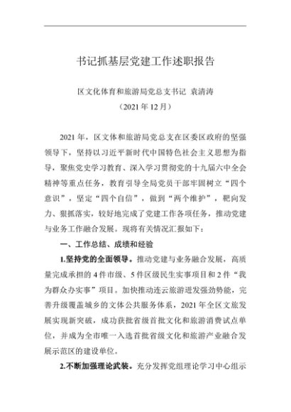 / 述职报告:2021年度书记抓基层党建工作述职报告(文体局)